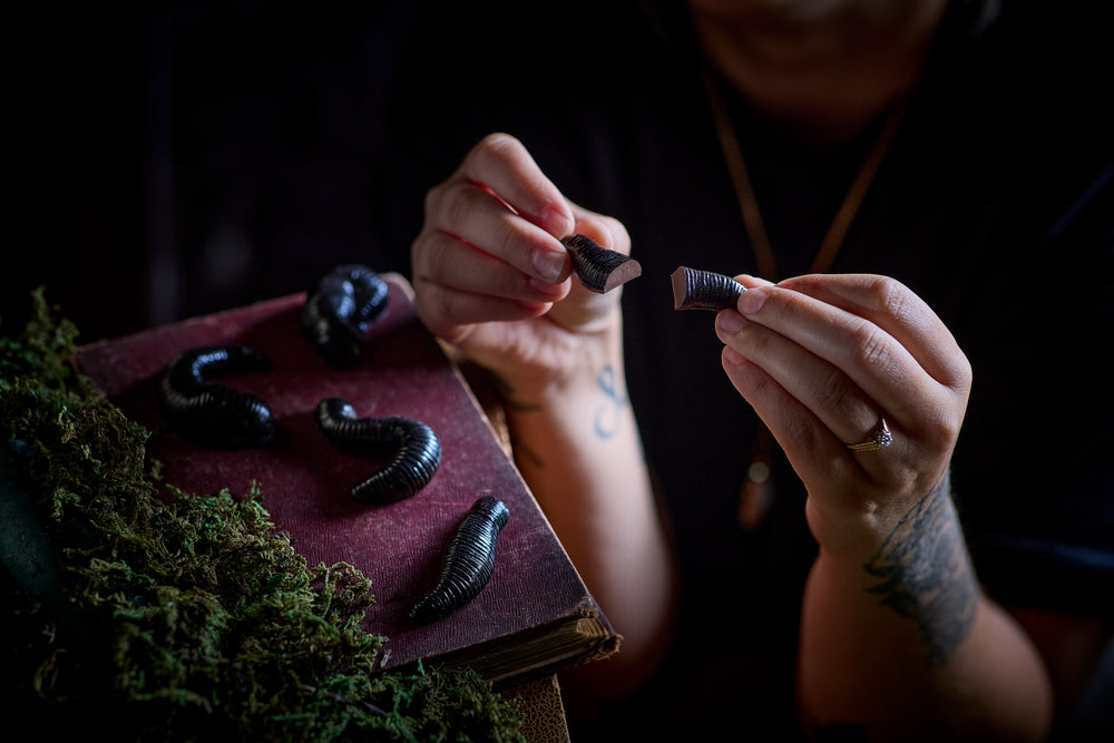 Hand made in the UK to my original design, these chocolate medicinal leeches (Hirudo medicinalis) have been a joy to sculpt. The wriggling poses and blood sucking shapes have been carefully observed and meticulously modelled in clay before making the moulds. They are cast in delicious, quality chocolate and hand painted to give that glistening finish.